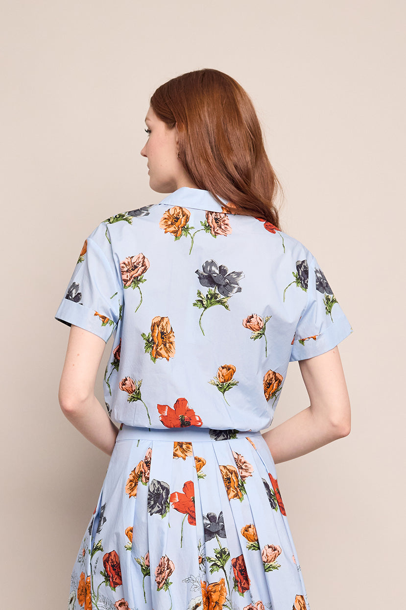 A reimagined classic short sleeve button up, the Asbury Top adds an extra dose of ease and glamour to an everyday basic. The cropped shirt features a button opening, cuffed sleeve and a front tie bow detail.