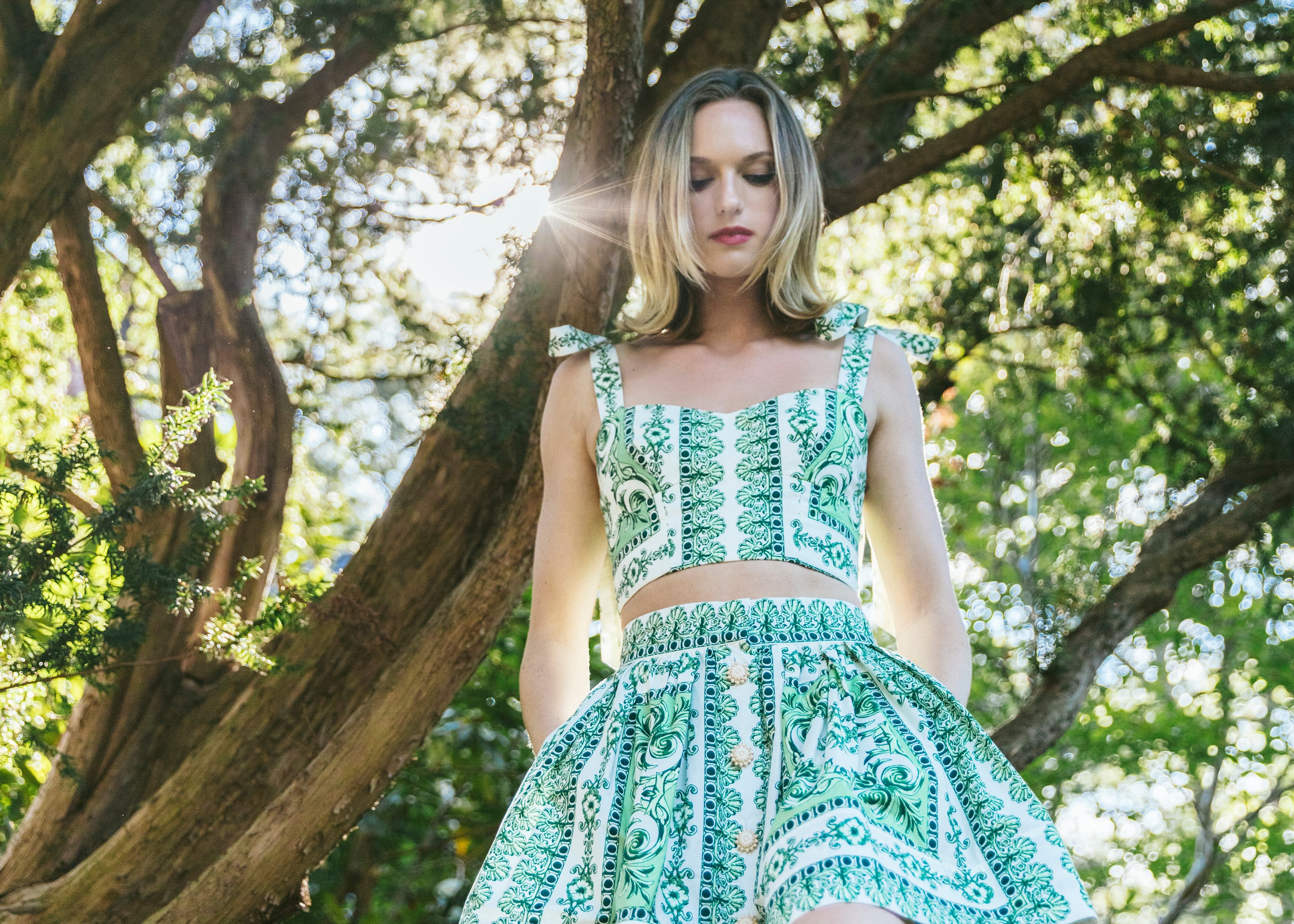• Nonfunctioning placket with handmade novelty buttons at center front, last button is functional