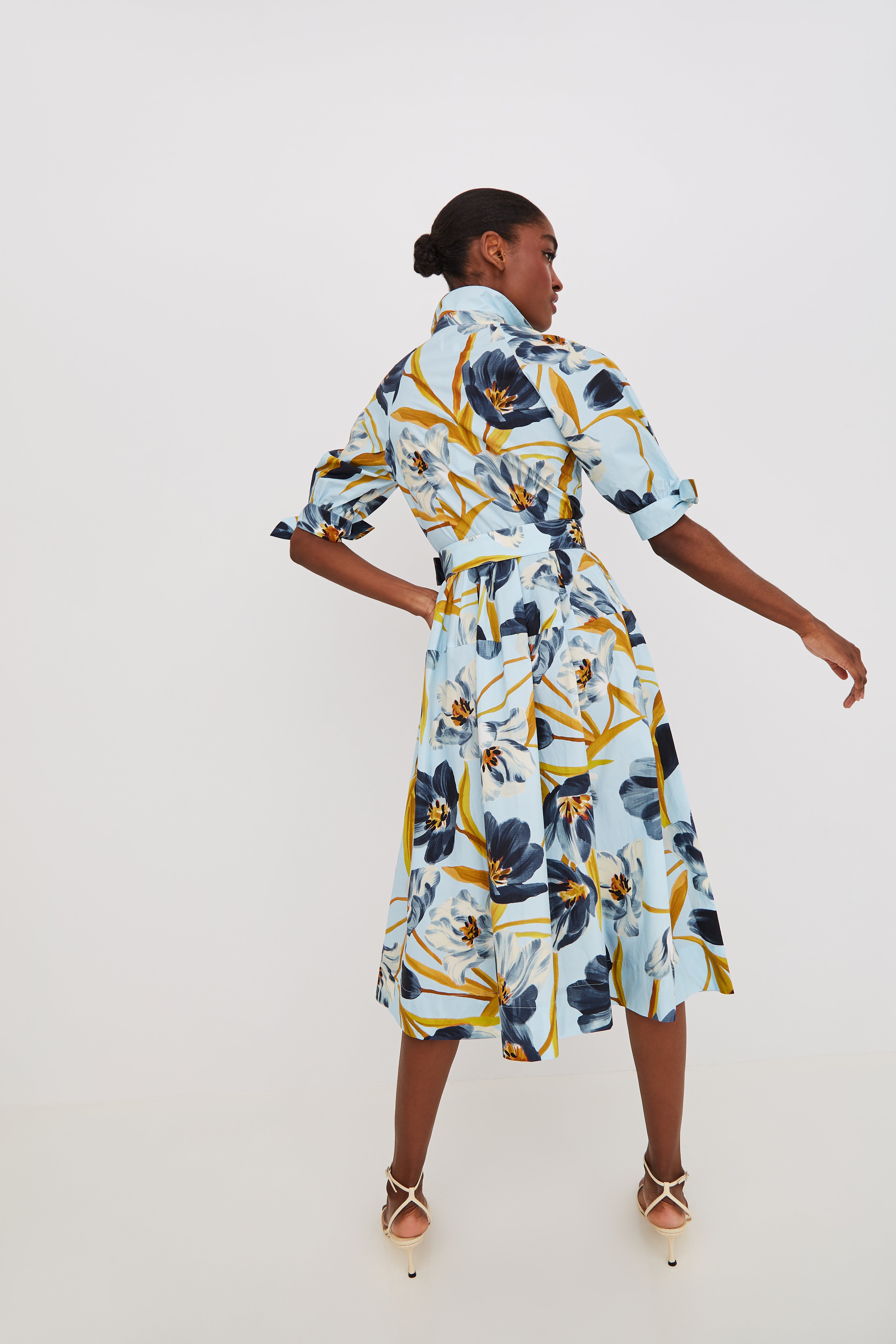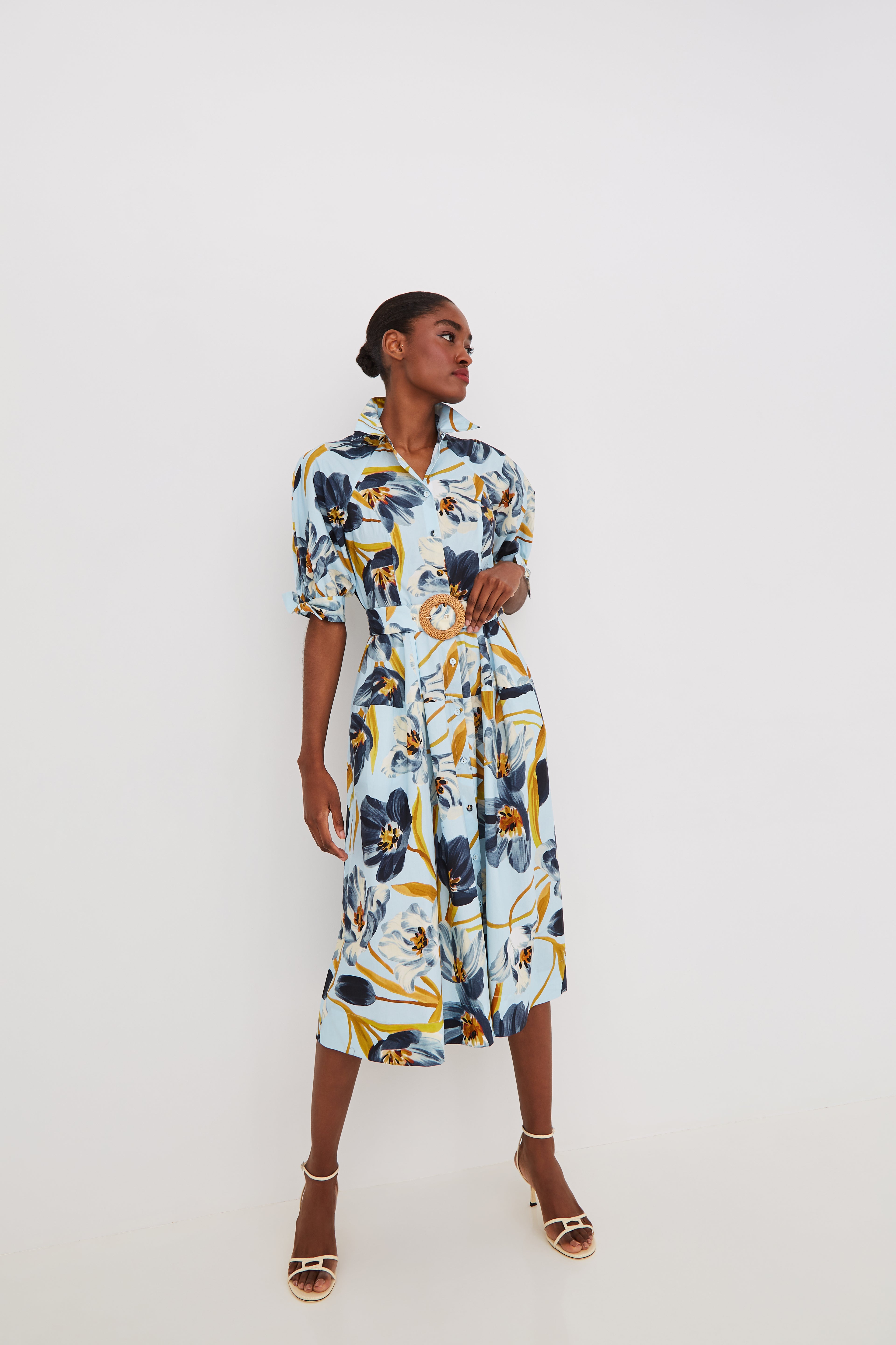 • Short sleeve midi dress with bows at sleeves that tie