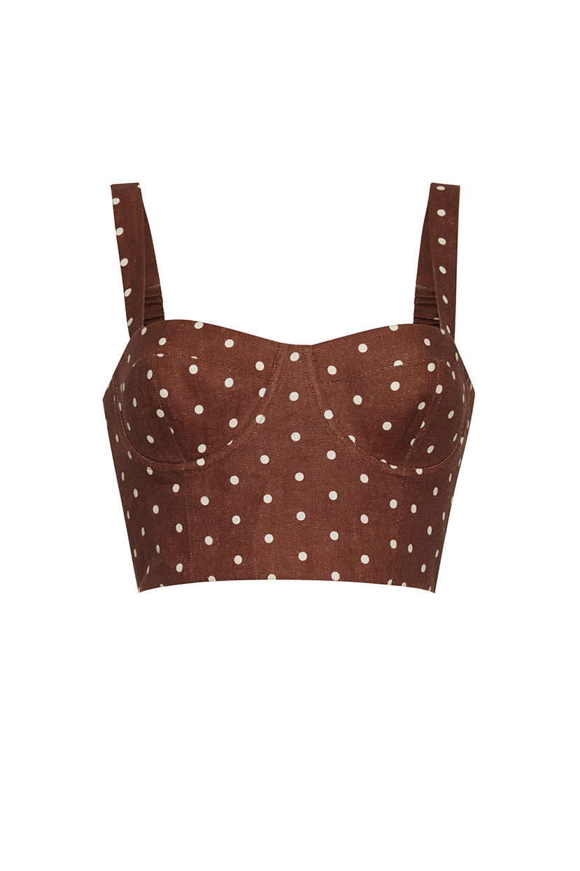 The Claudine Top was designed as an easy compliment to denim and matching printed looks. An extremely flattering and feminine corset crop top, the Claudine is designed in linen and pairs effortlessly with the matching Josephine Pant. The elastic at the back of the straps and fitted bodice allow for a comfortable fit and no-fuss pretty detail.