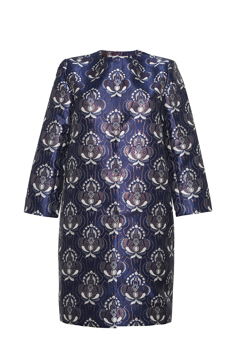 • Vintage jacquard short coat with fabric covered snaps at inner opening at center front