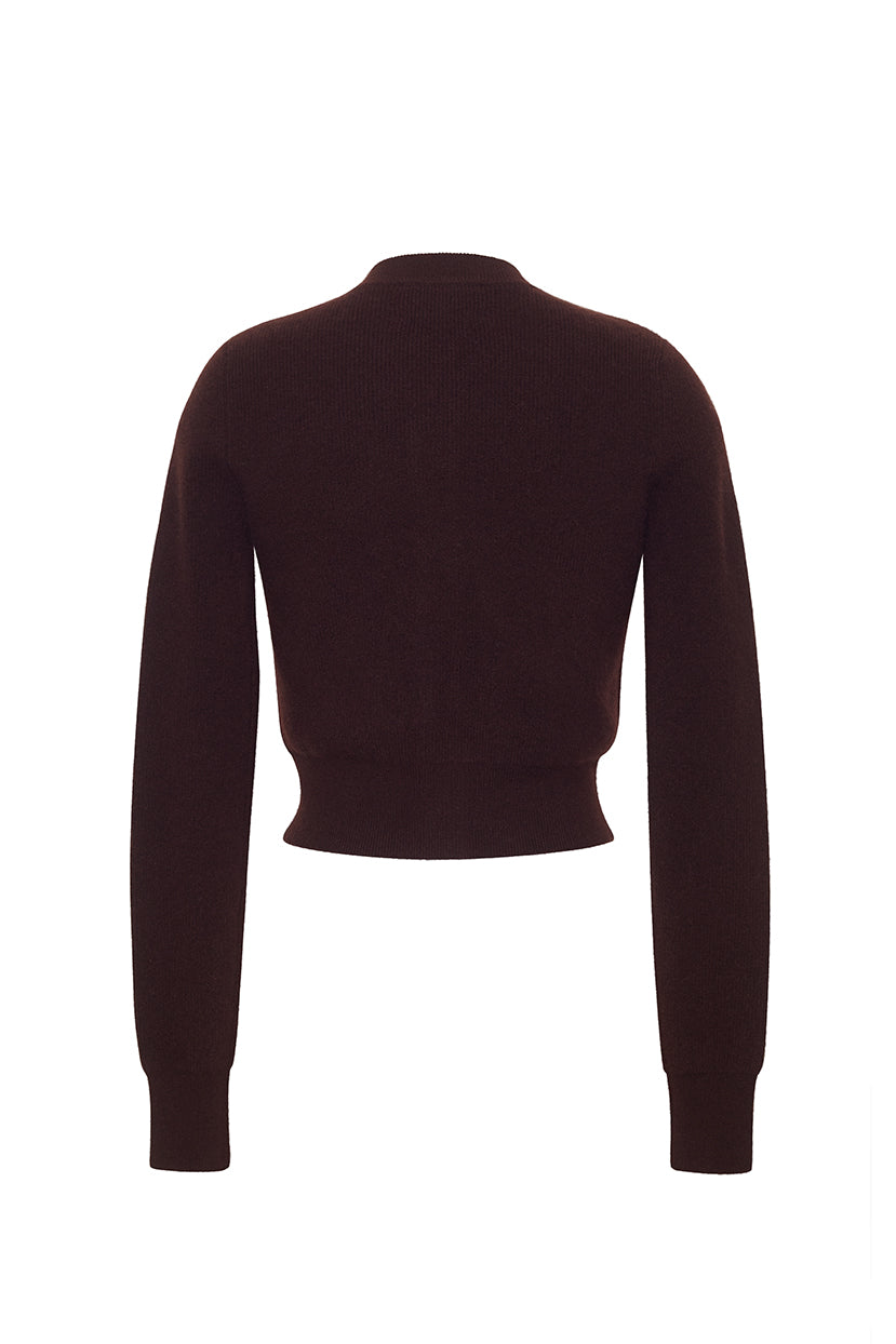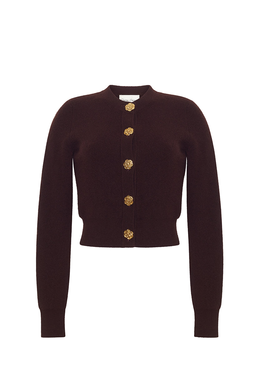 • Crewneck fitted long-sleeve cardigan with novelty gold floral buttons