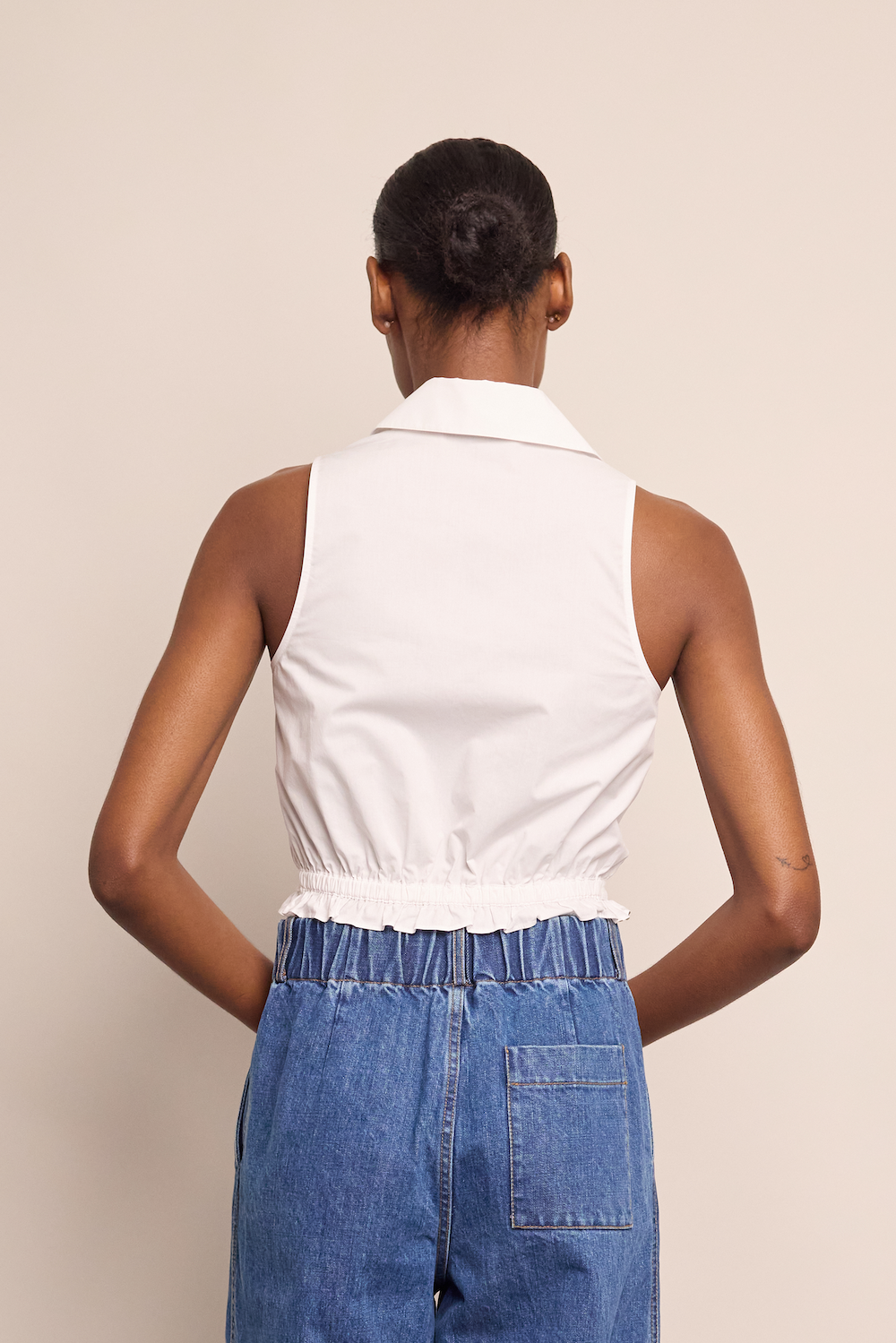 • Collared button down halter top