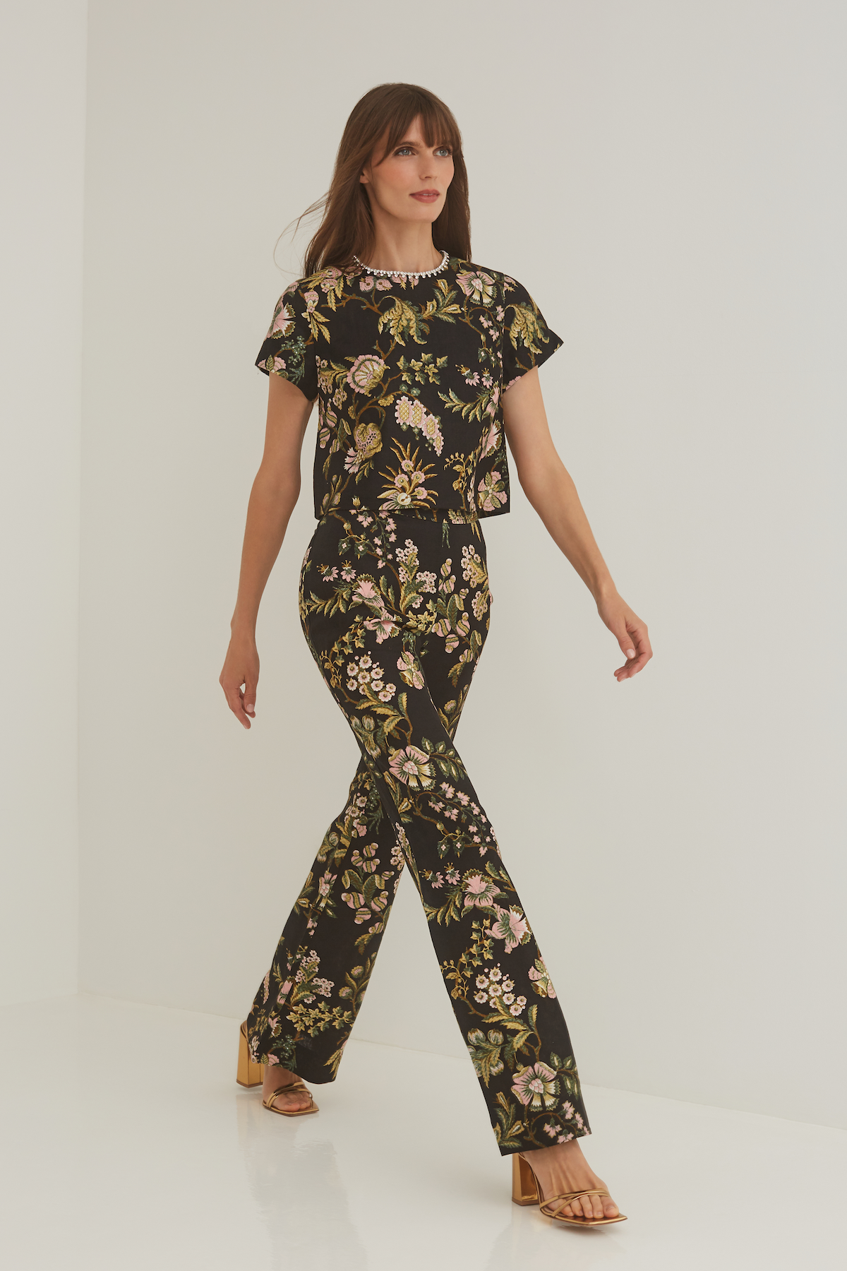 The Josephine Pant features an elegant flared palazzo silhouette, angled pleats and a beautiful trapunto waistband. Pair it with the matching Hudson Top for a head-to-toe look.