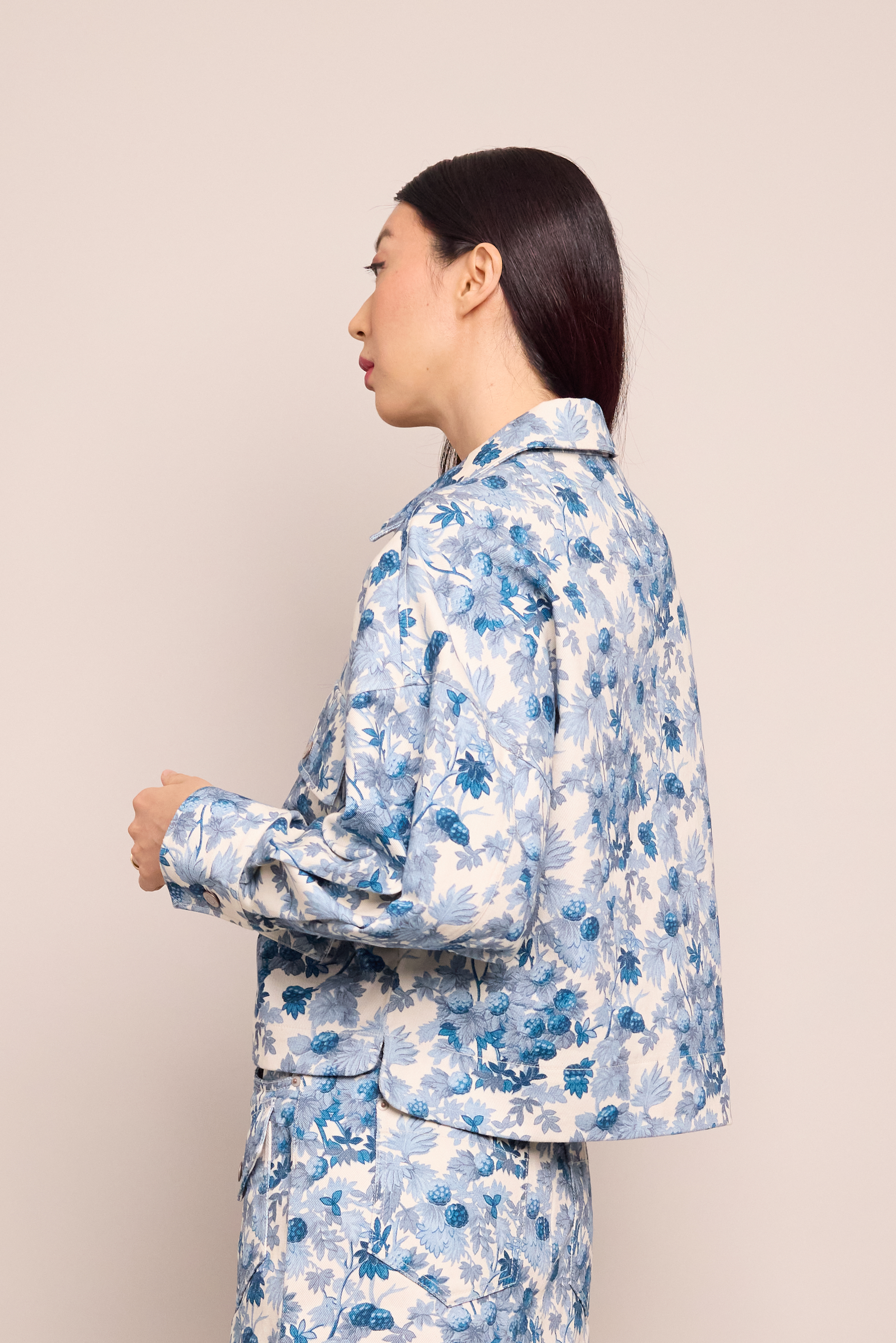 • Cropped full sleeve collared jacket designed for an oversized look