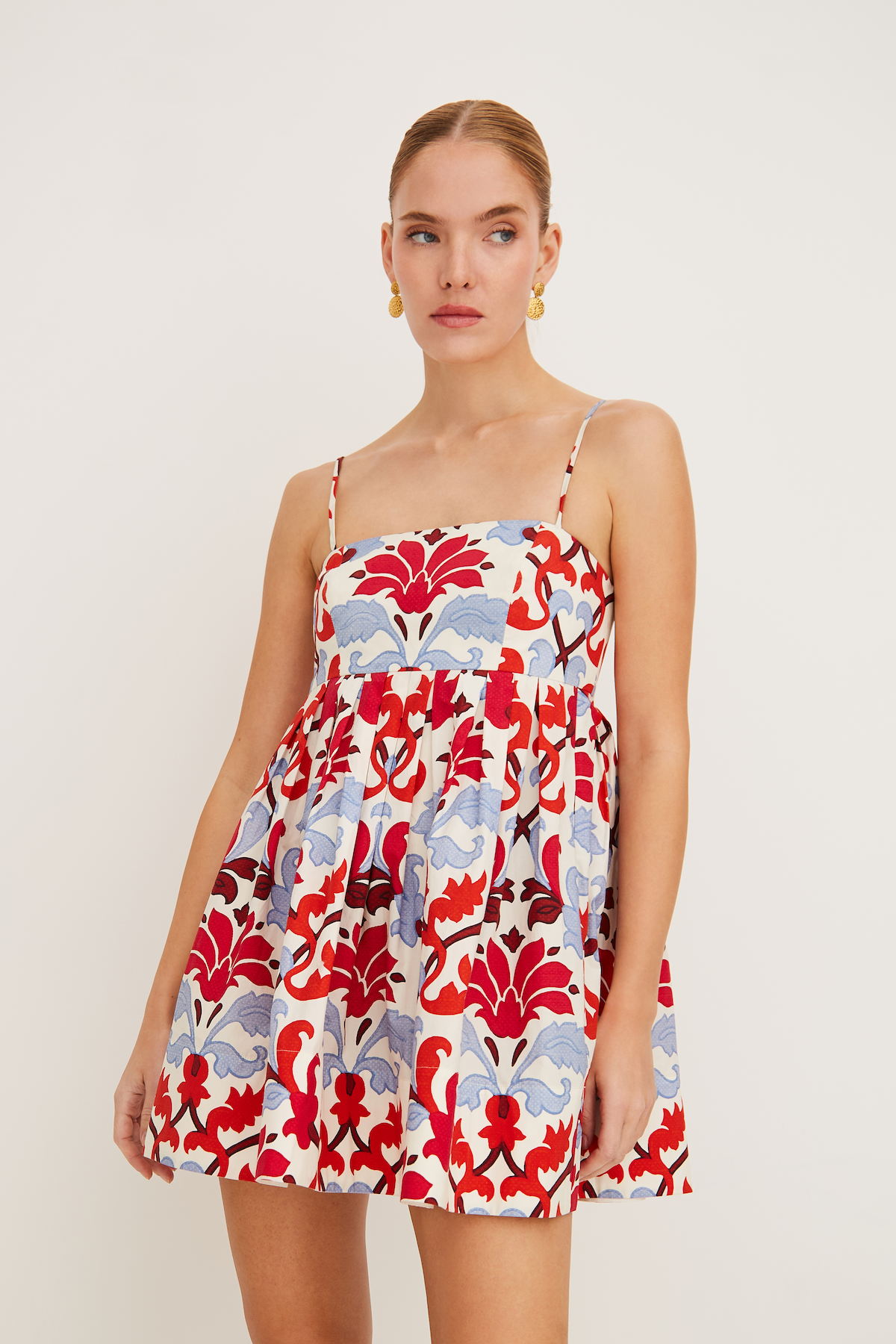 • Mini length babydoll dress designed for a fit-and-flare look