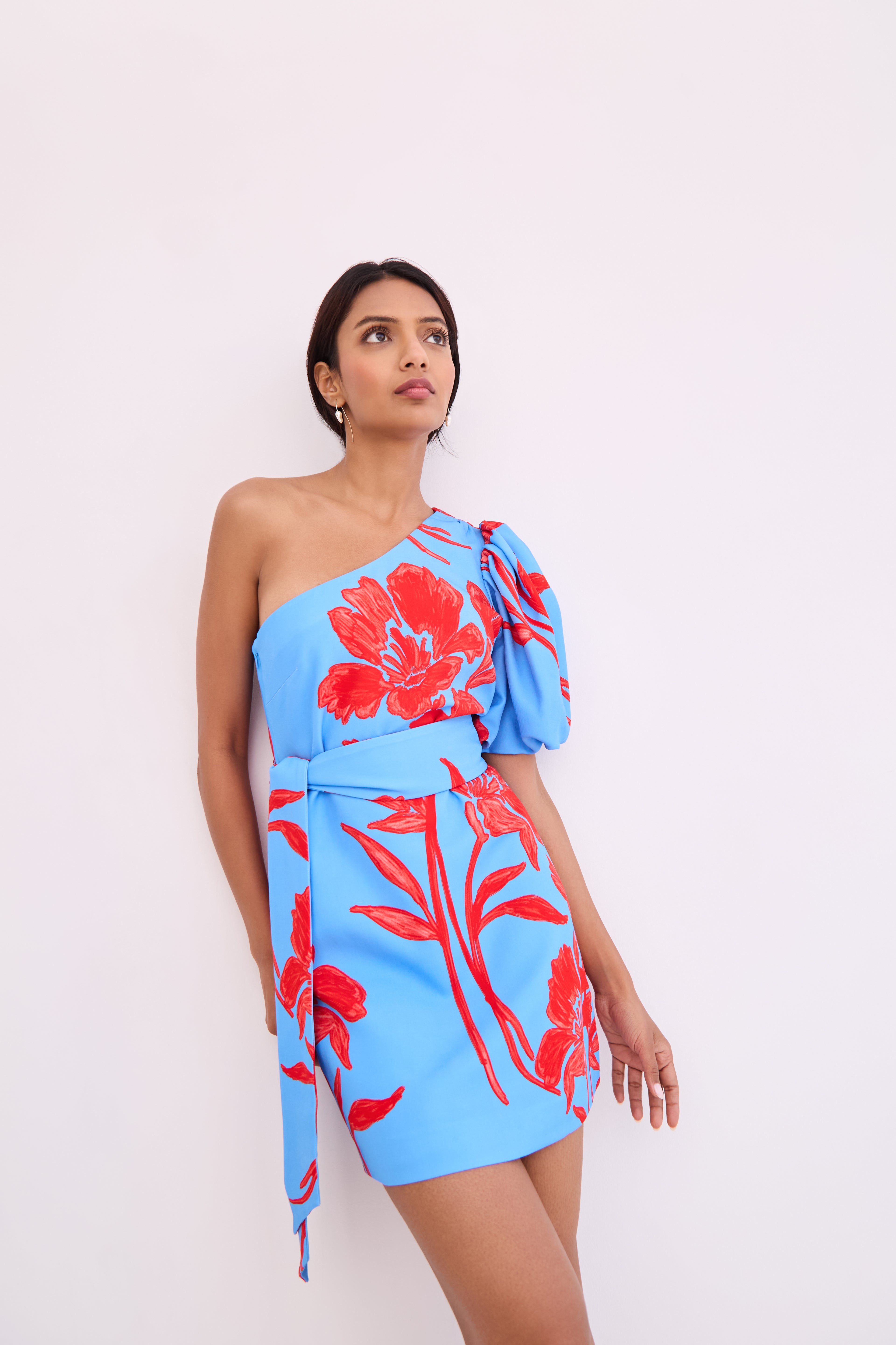 • One shoulder puff sleeve mini dress designed for a bodycon look