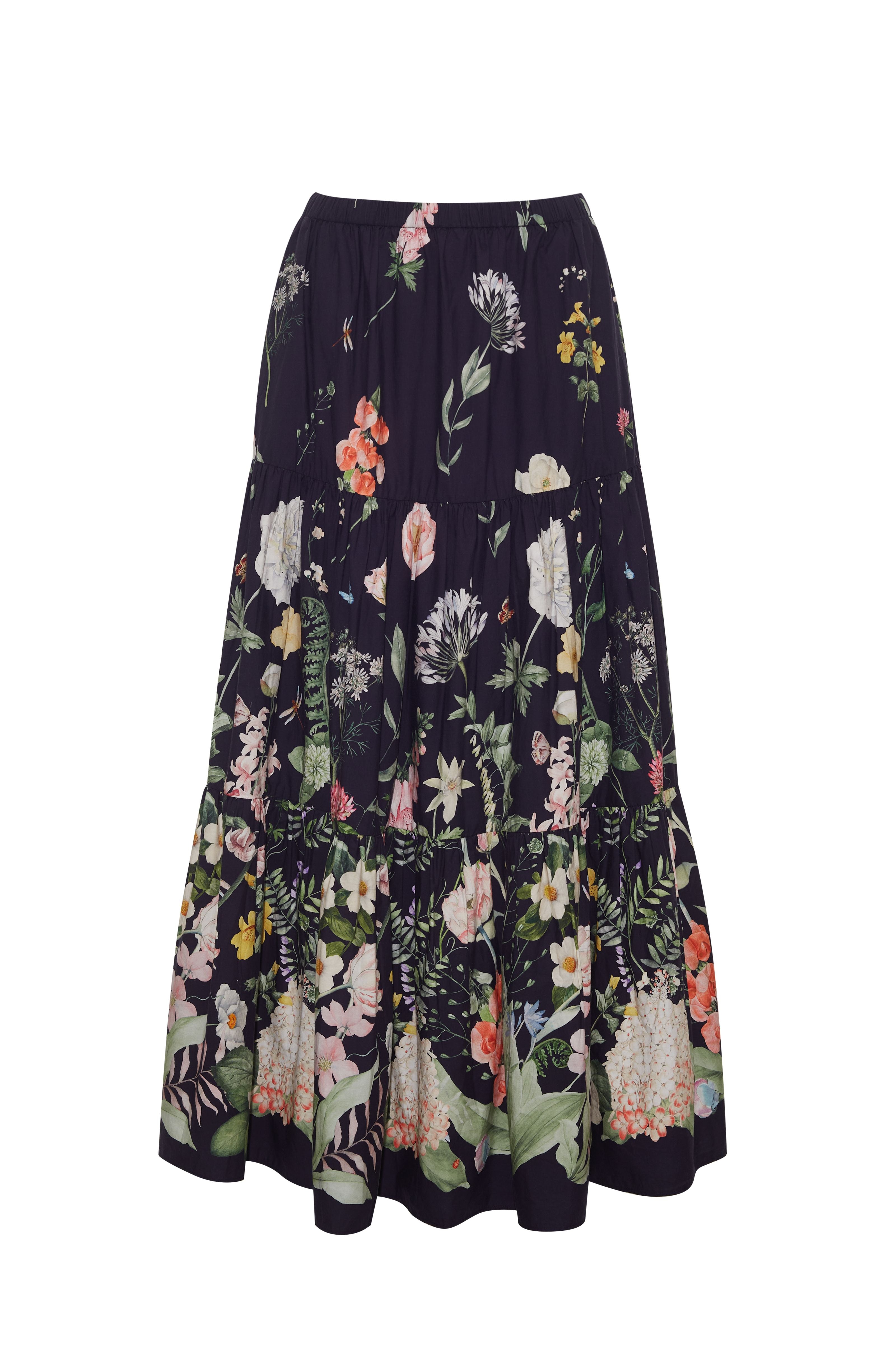 The Melanie in poplin is perhaps our most effortless skirt. The elastic waist and tiered silhouette flatter the figure and provide multiple styling options. Pair with our matching Highland Top in the same print for a fresh look or dress down with a white tee and kicks.