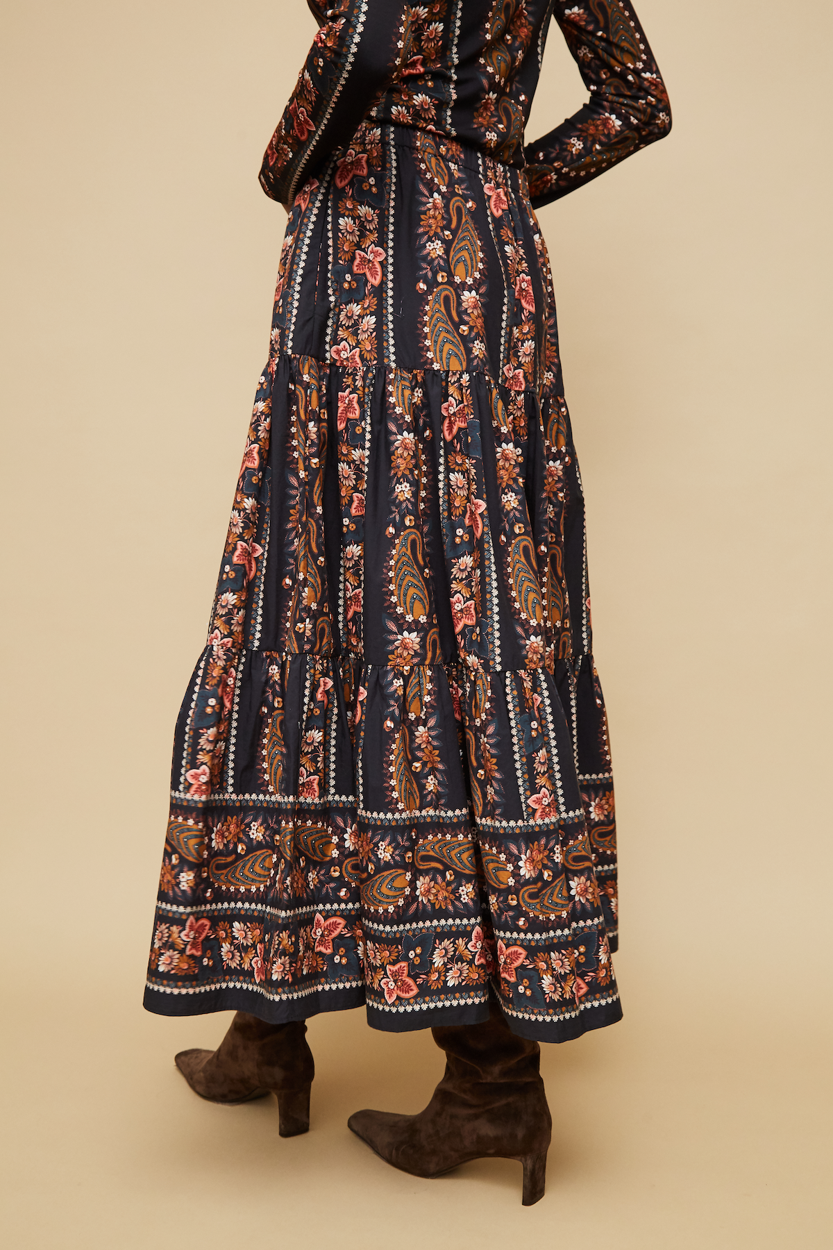 The Melanie is perhaps our most effortless skirt. The elastic waist and tiered silhouette flatter the figure and provide multiple styling options.