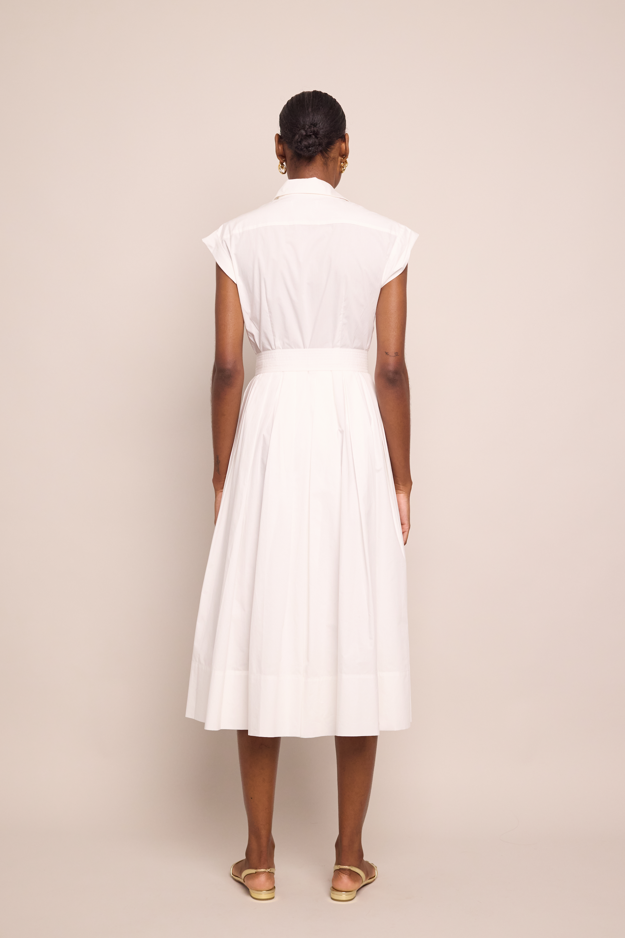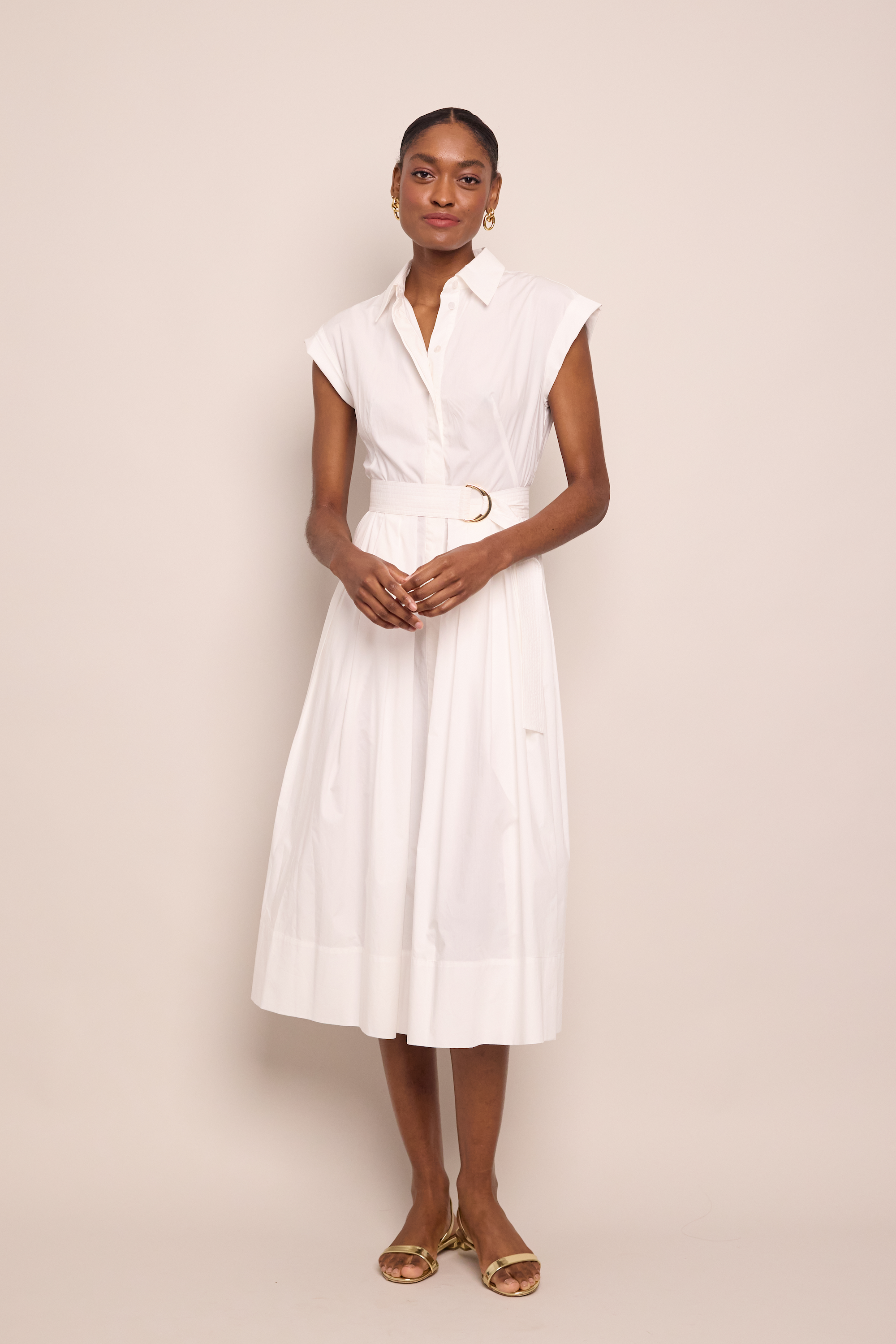 • Drop-shoulder, fit-and-flare, midi, belted shirtdress