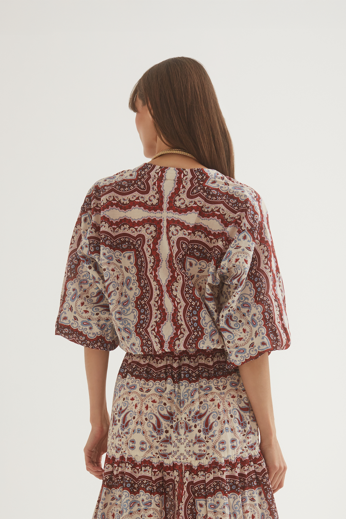 Cut from airy cotton voile, the Perrin Top has an easy, oversized silhouette that gathers with drawstring ties at the cropped hem. Wear it as a set with the matching Melanie Skirt.
