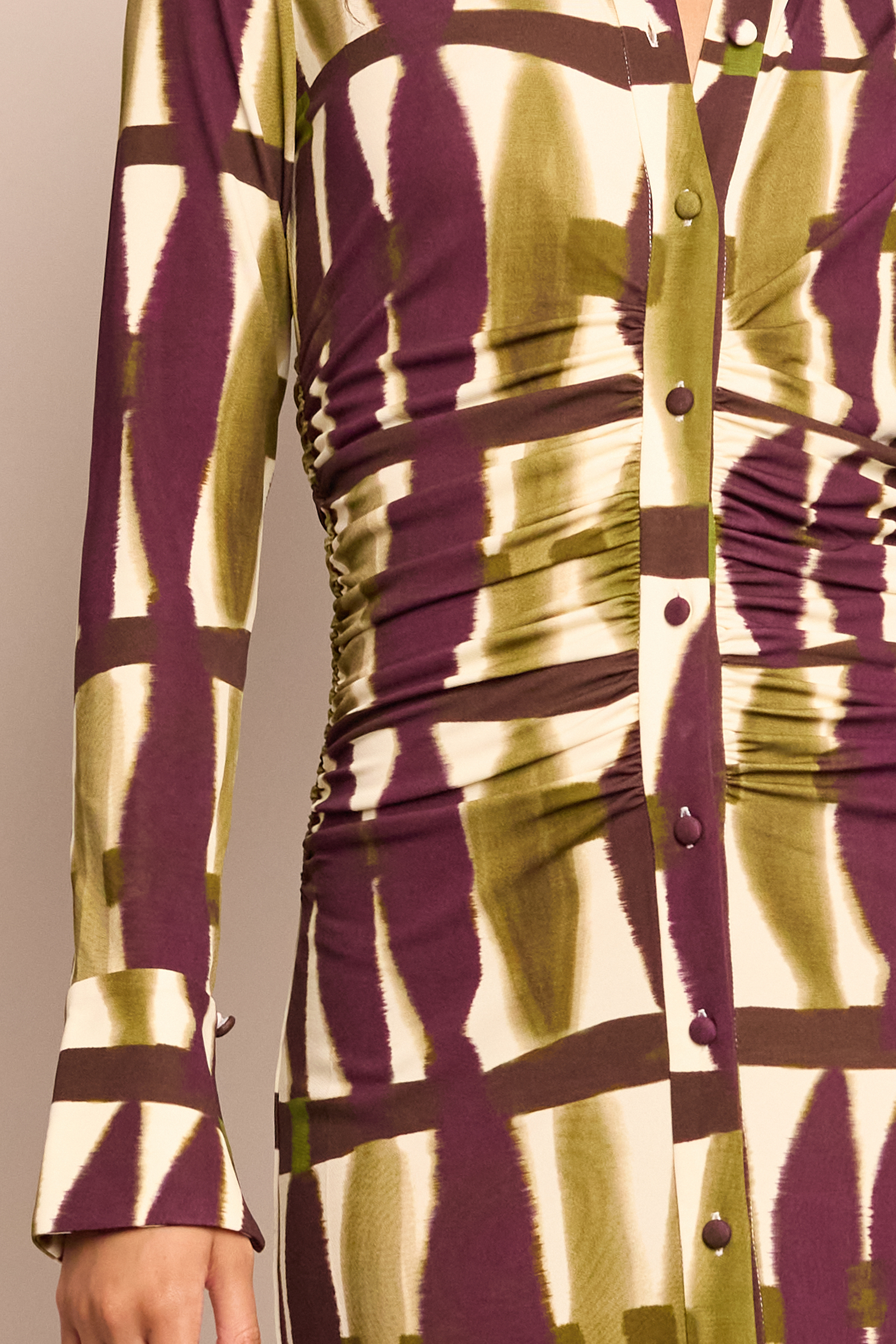 • Sleeves have fluted cuff with bungee elastic and self covered buttons at the top opening of the cuff