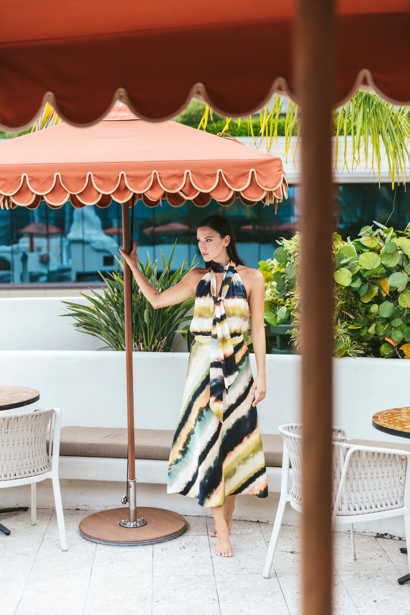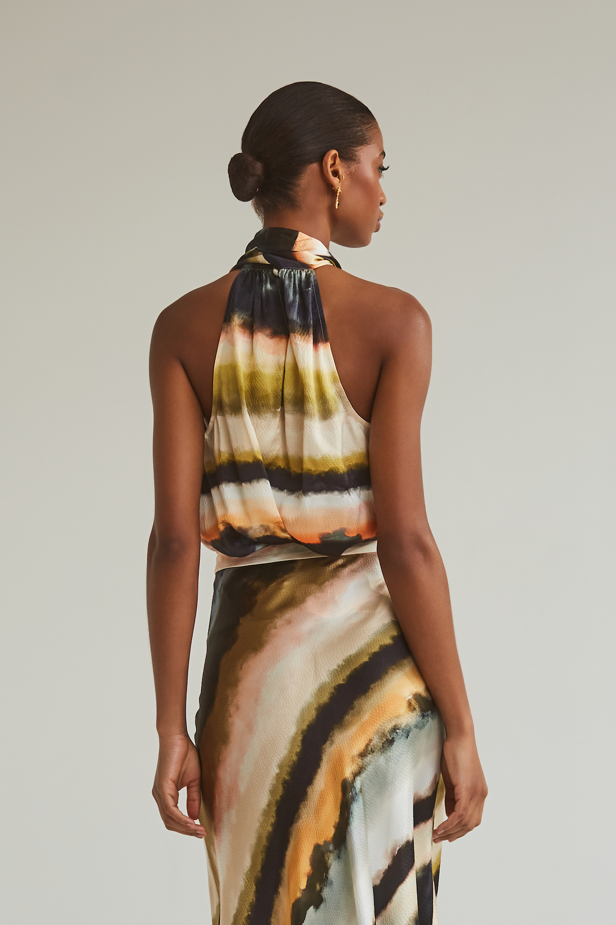 • Center back slit at back with self covered shank button with gold rim detail for closure