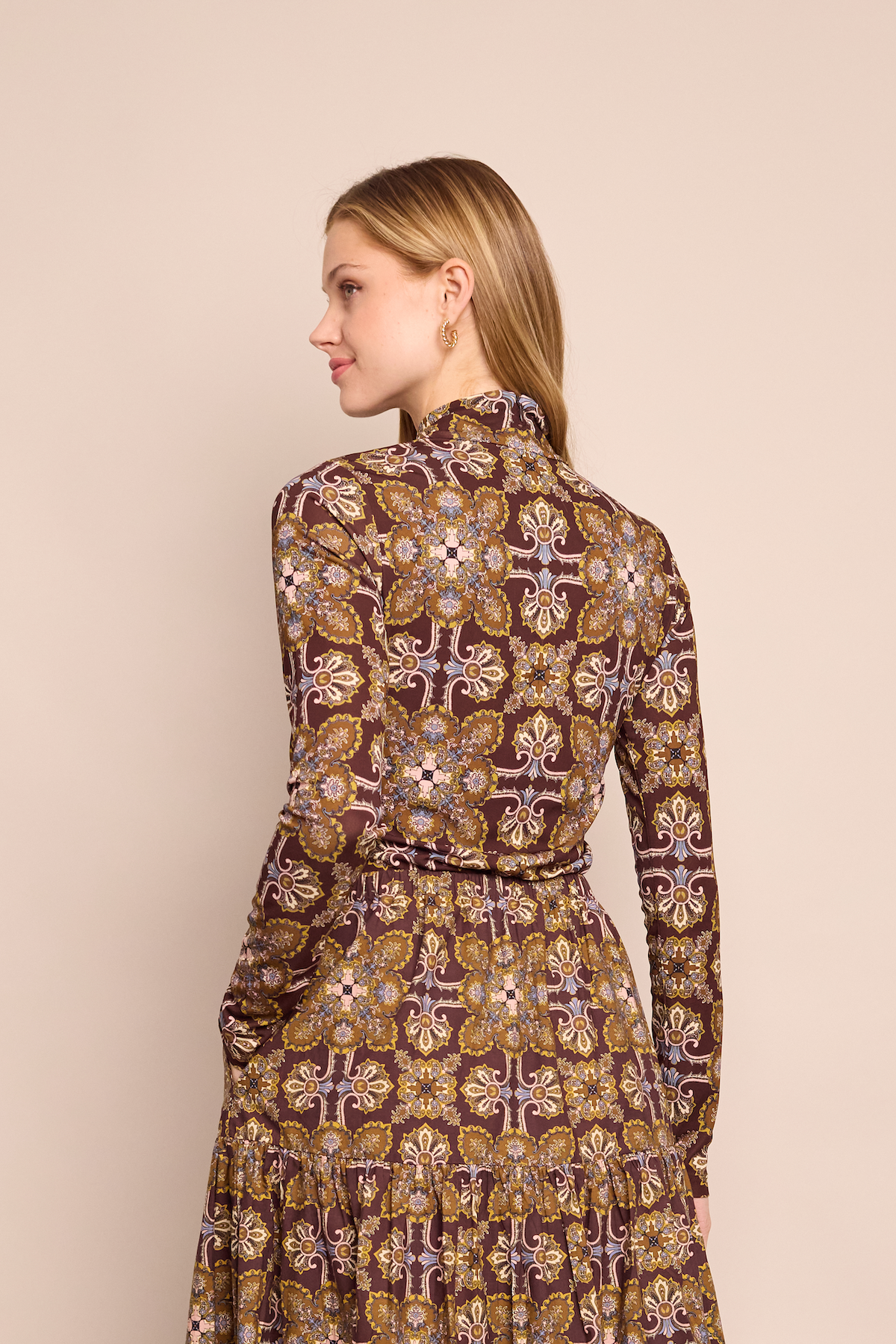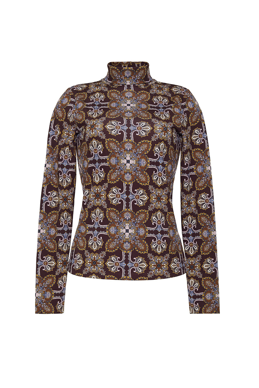 The Suzie Top is an ultra-luxe, elevated layering staple sure to become a key part of your wardrobe rotation. The fitted mock-turtleneck silhouette is rendered in boldly printed slinky jersey.