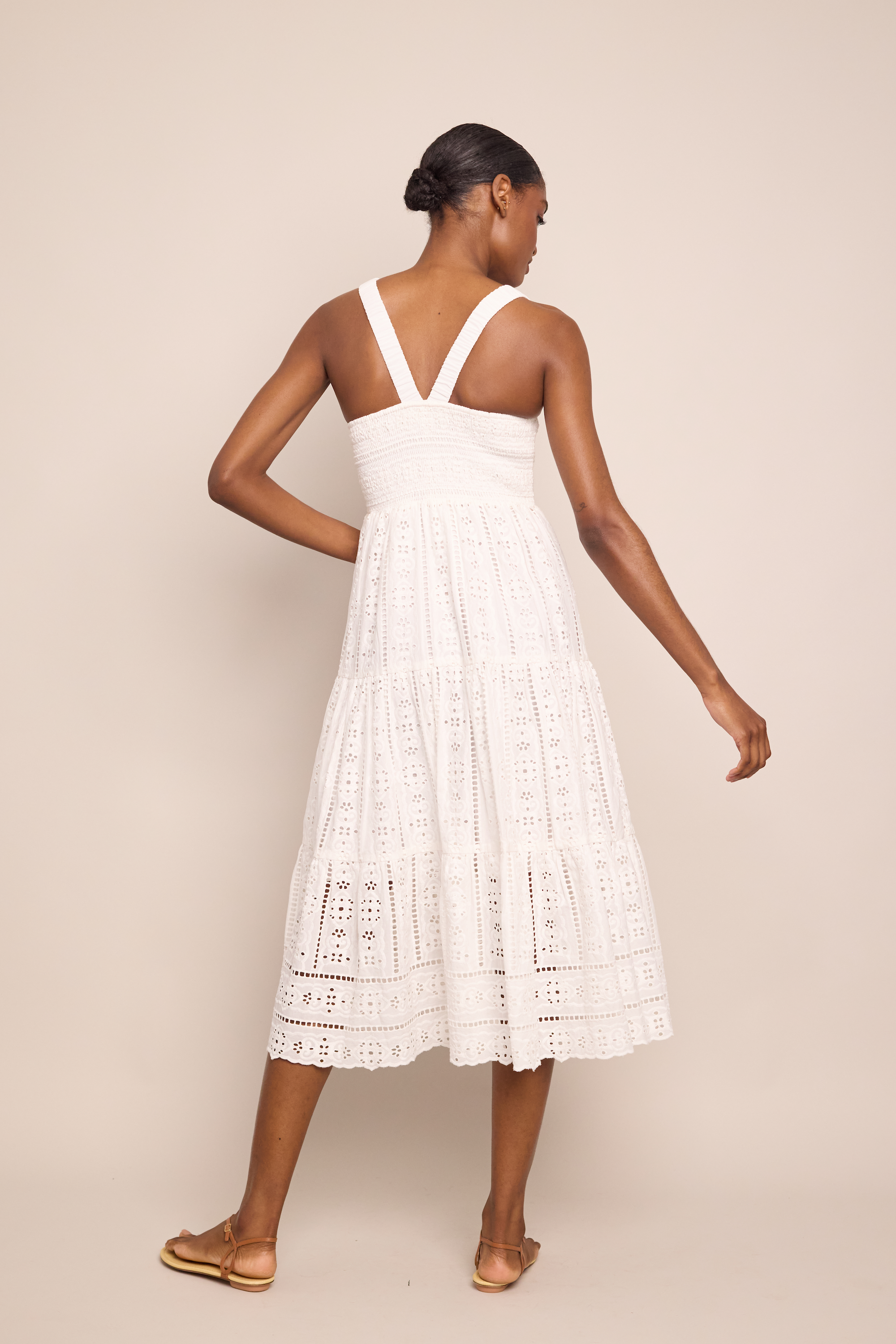 • Smocked midi dress with tiered skirt