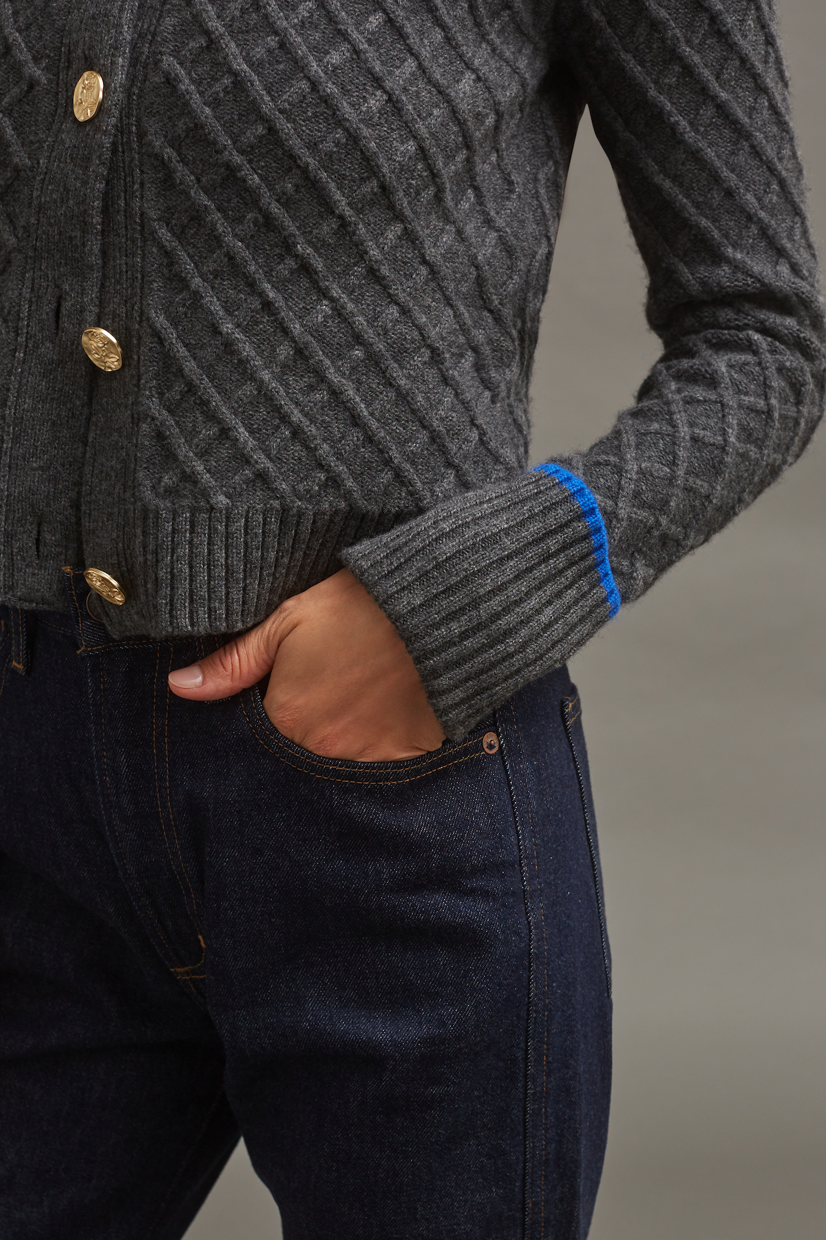 • Pop color at neck and cuffs