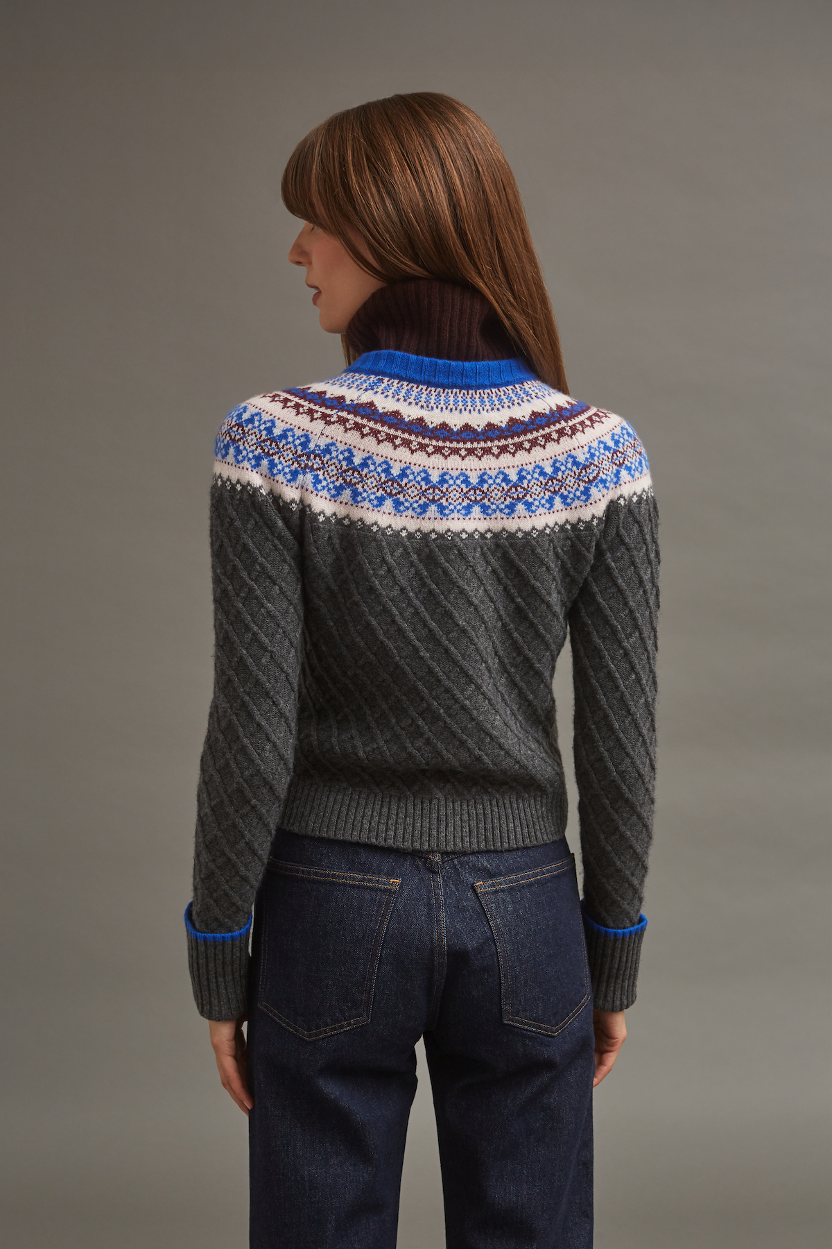 • Novelty Fair Isle pattern around neckline