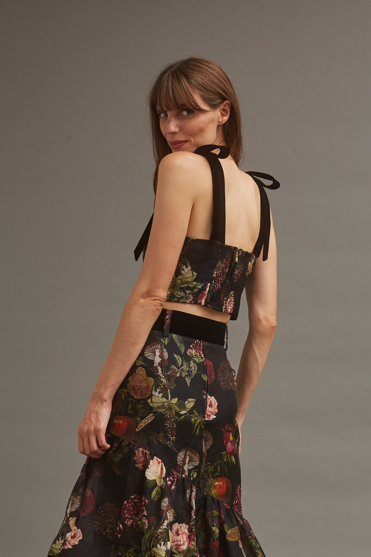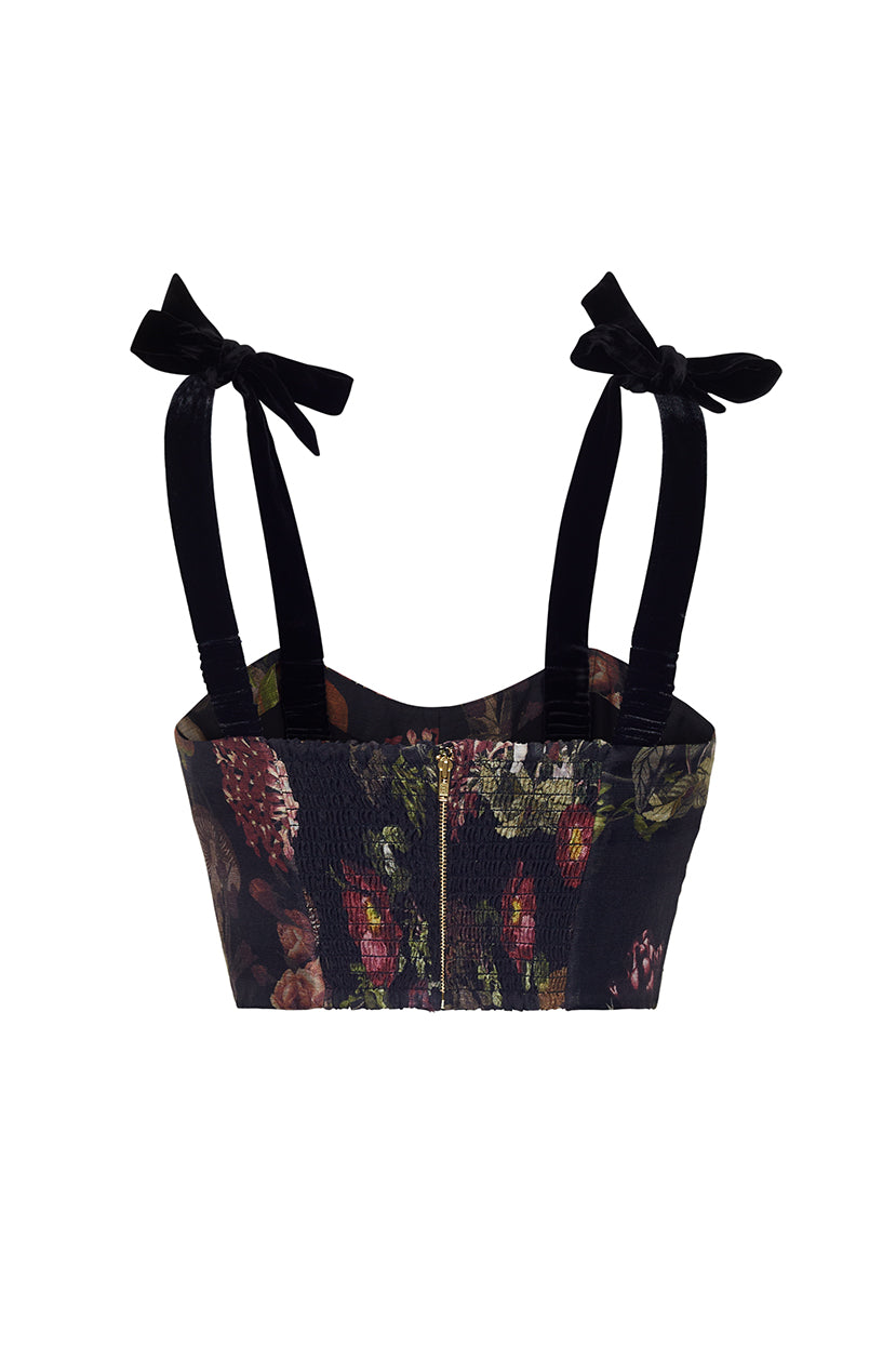 • Fitted crop top with large tact velvet bow ties