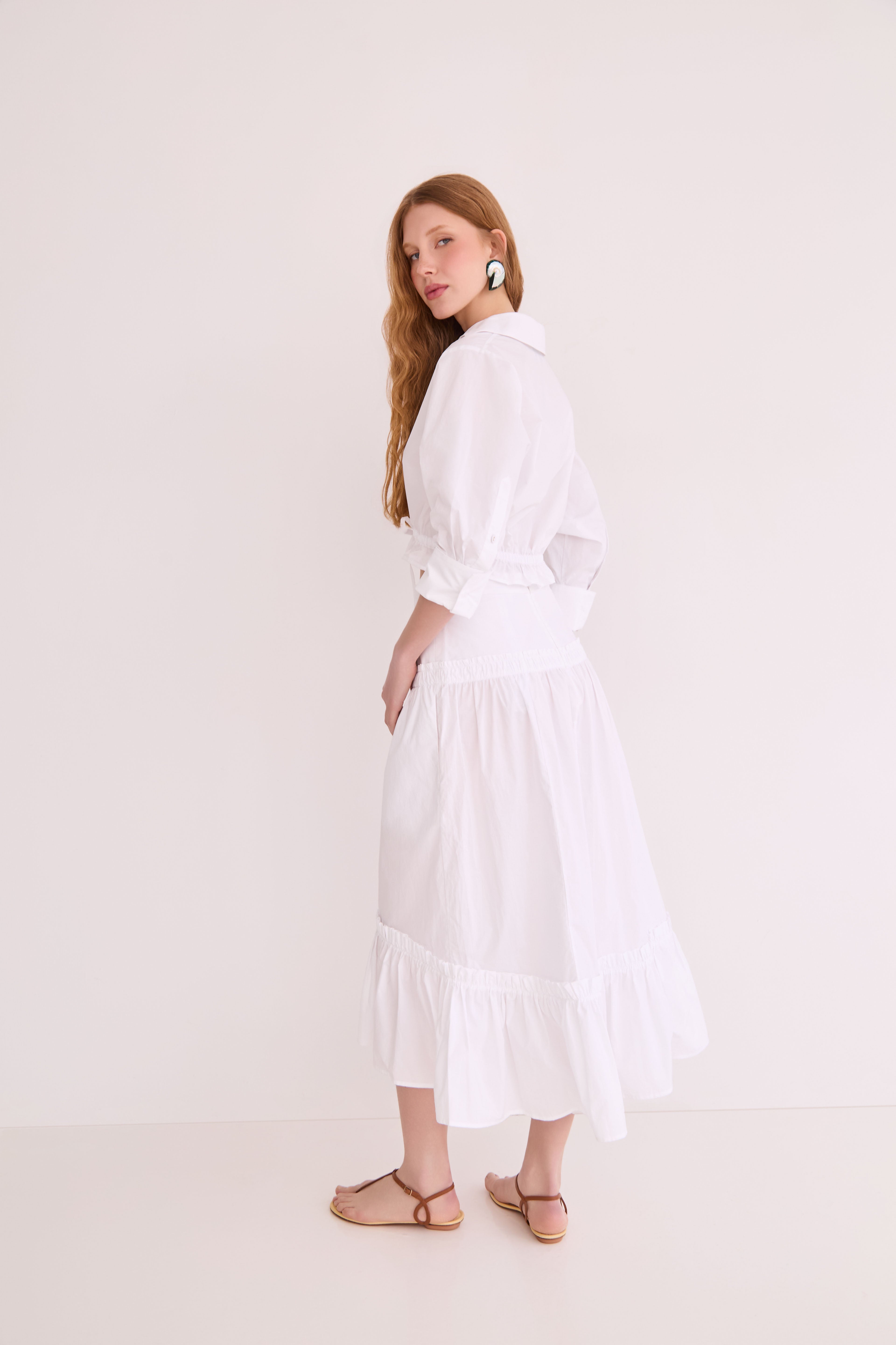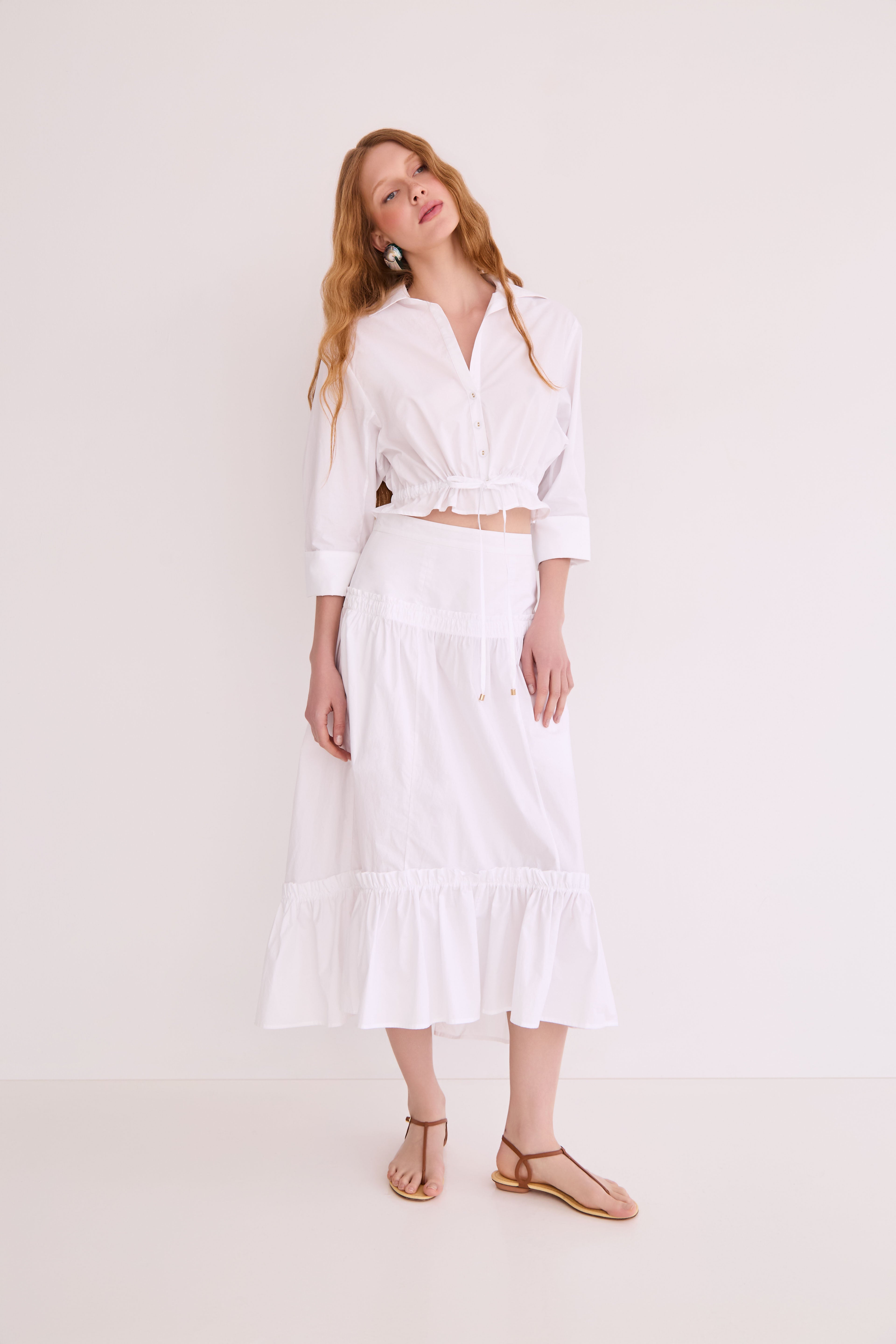 The Tisbury Skirt balances a bohemian spirit with a polished fit. The high-low, tiered ruffle skirt has just enough volume to feel special while being casual enough to knot your favorite t-shirt on top for a playful look.