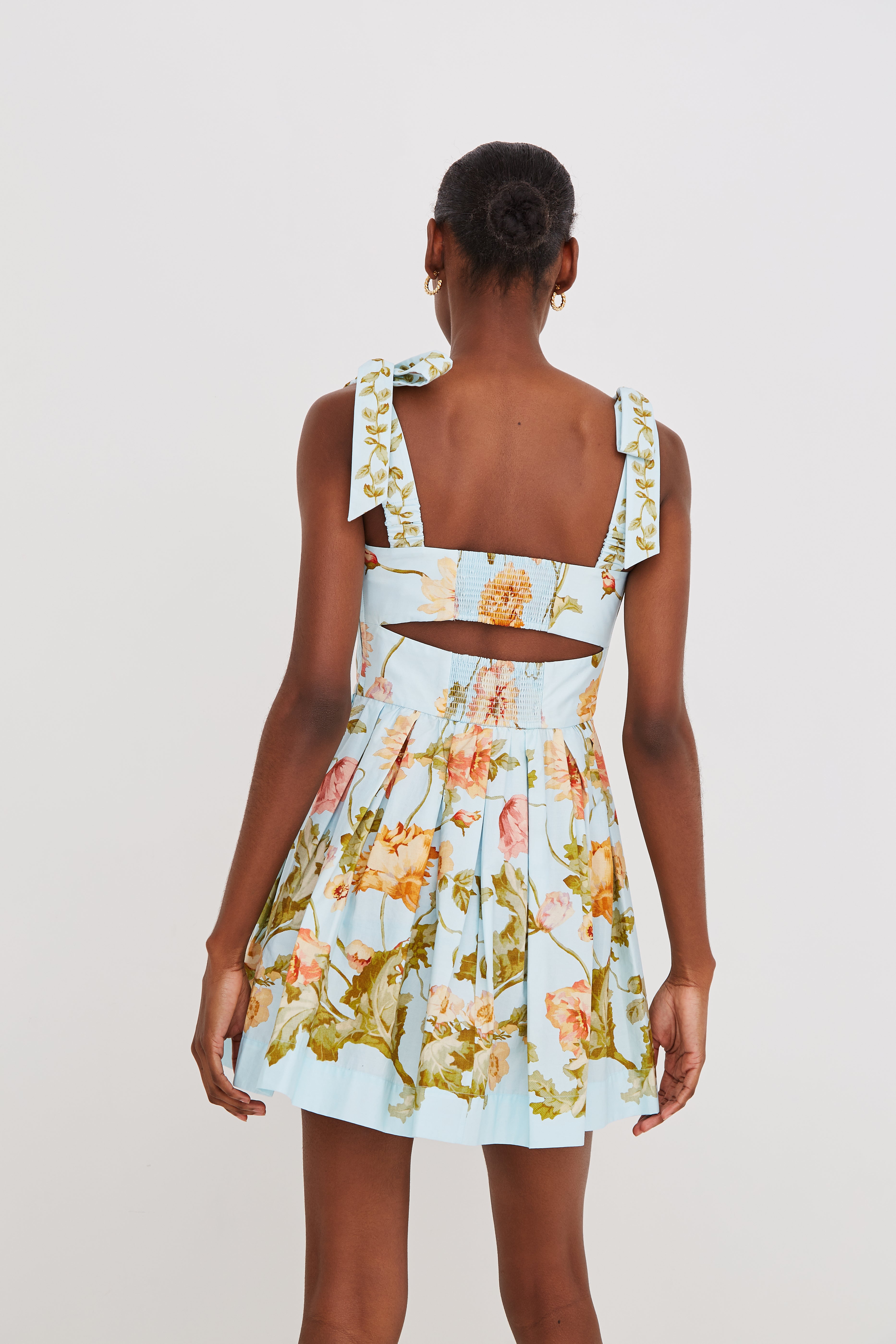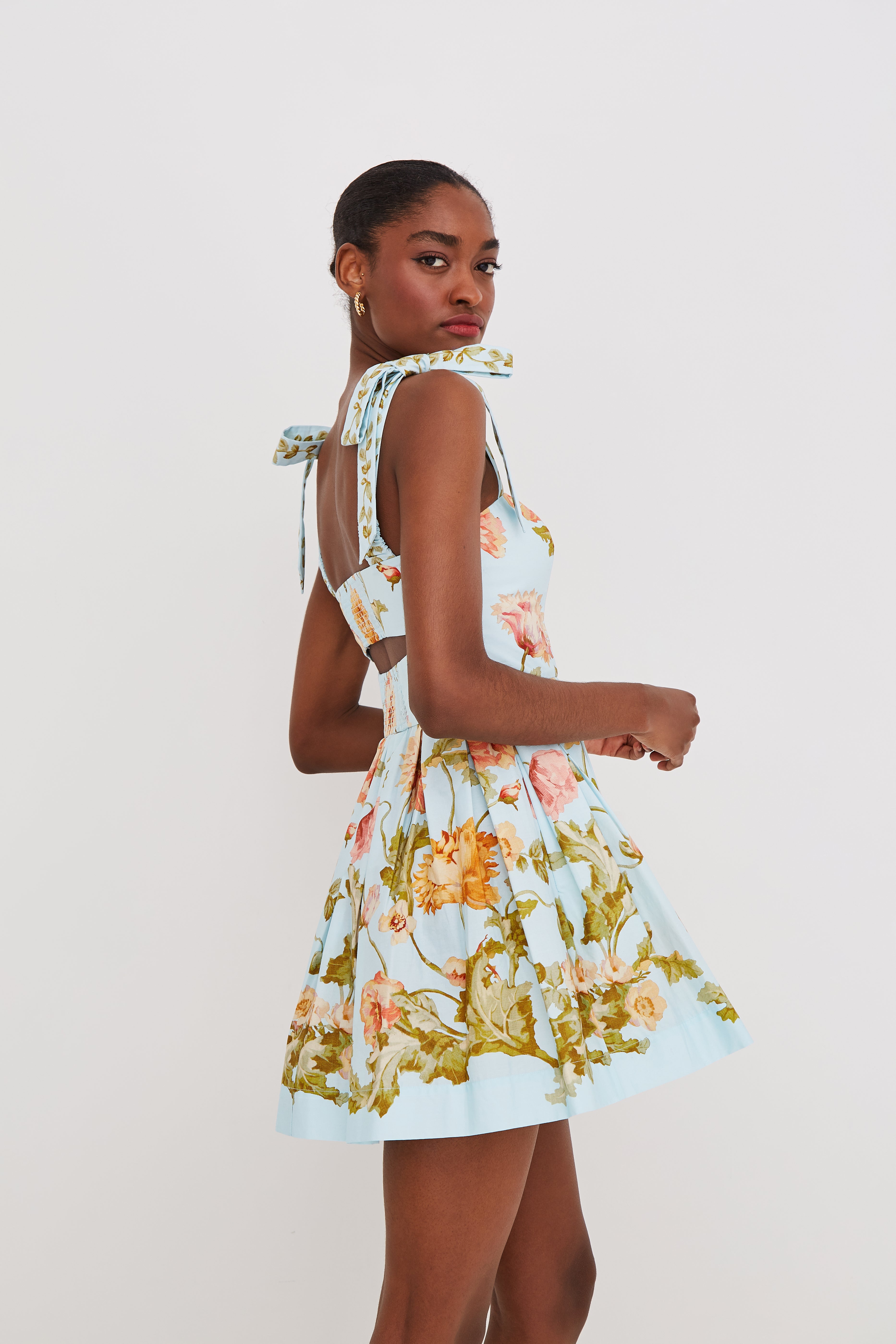 • Fit-and-flare mini dress with functional ties