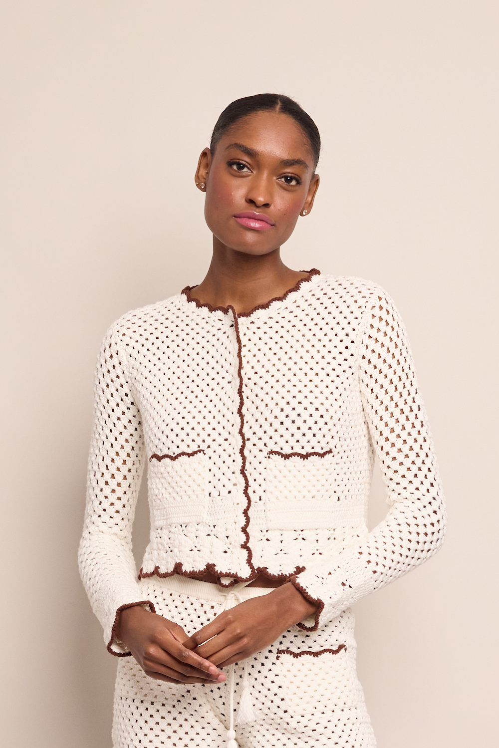 • Crochet stitch with contrast tipping scallop edge