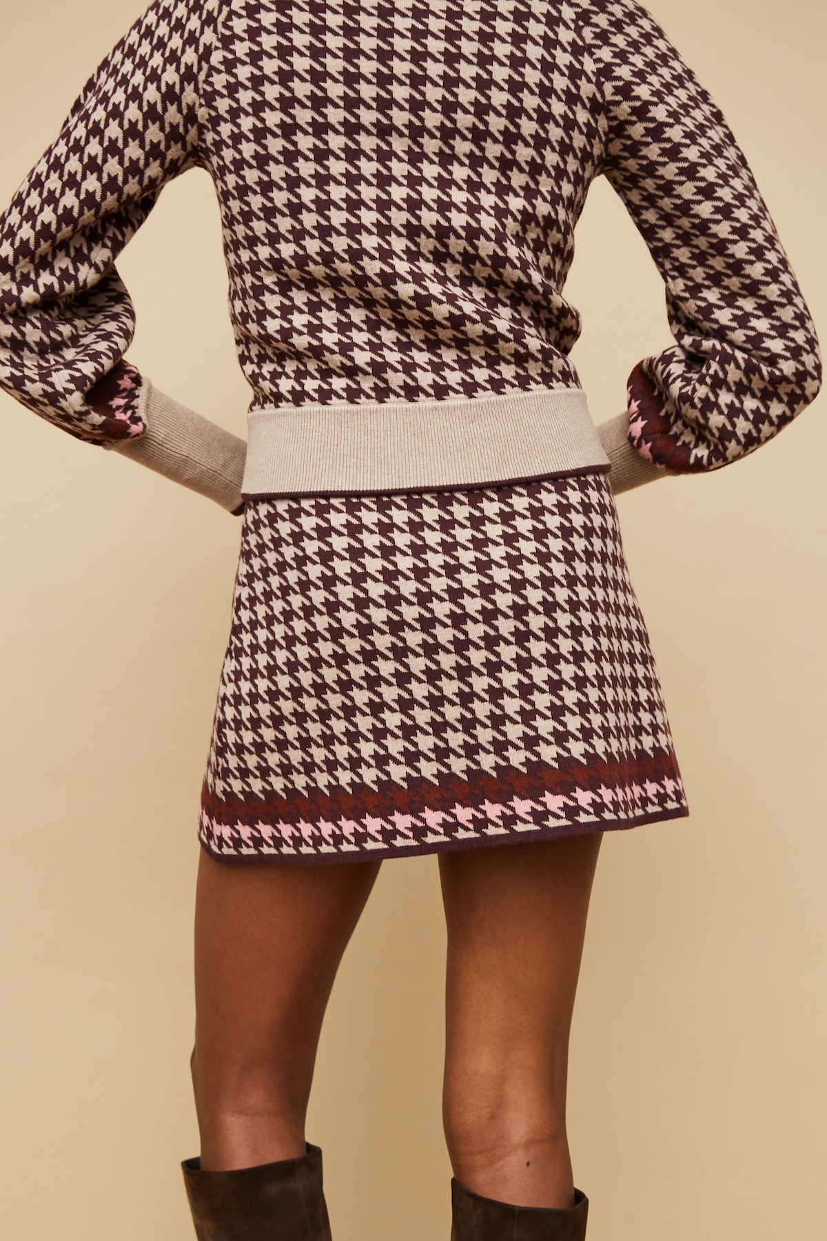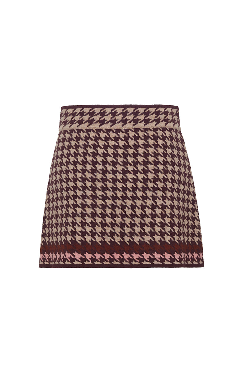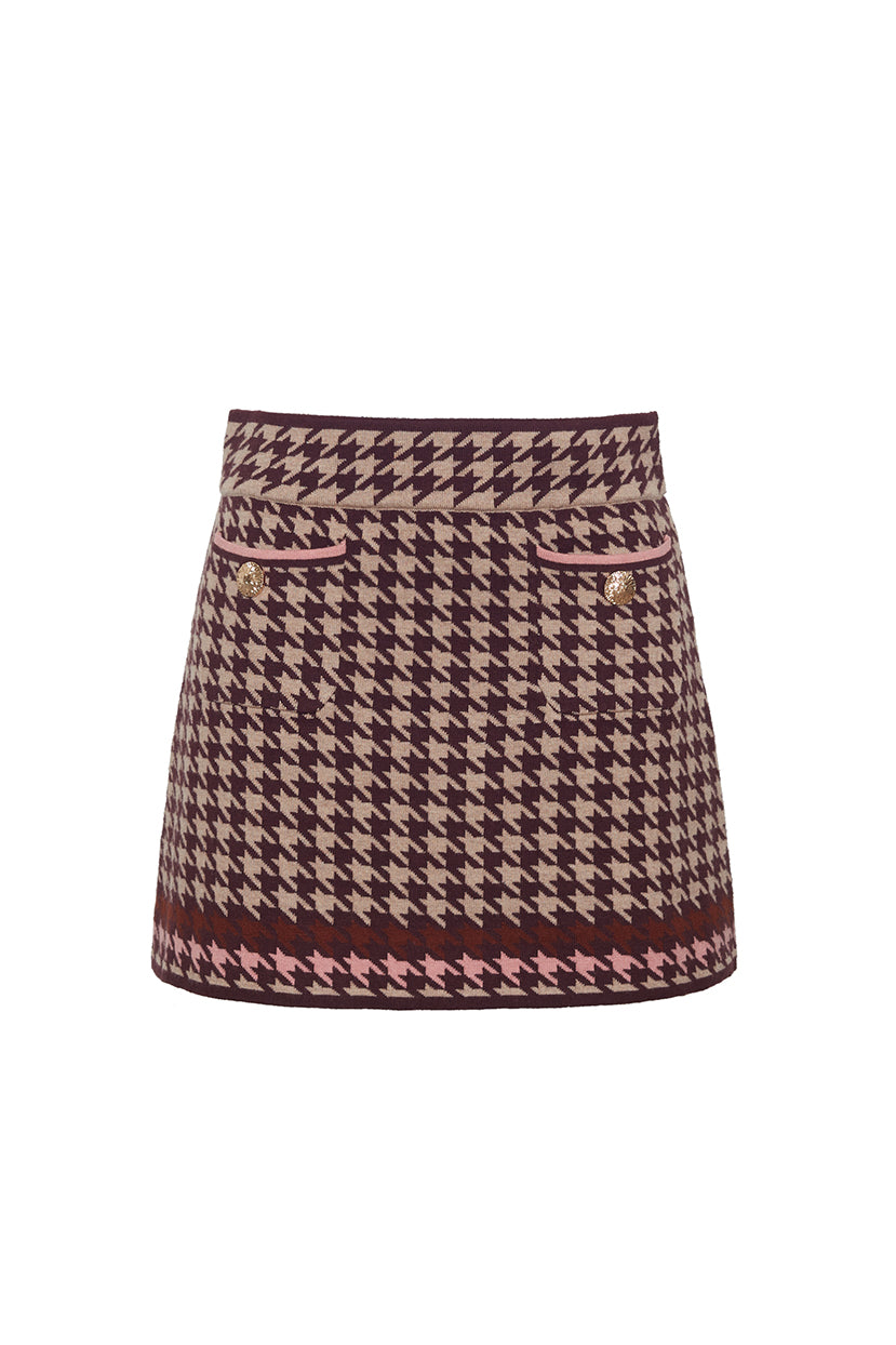 • Jacquard houndstooth, elasticated-waist, mini skirt with non-functional patch pockets